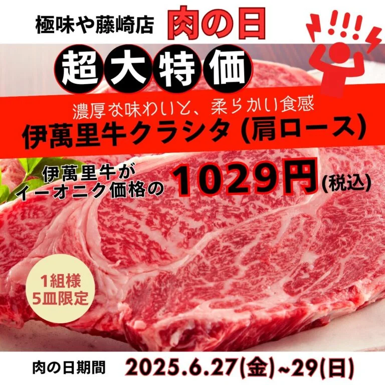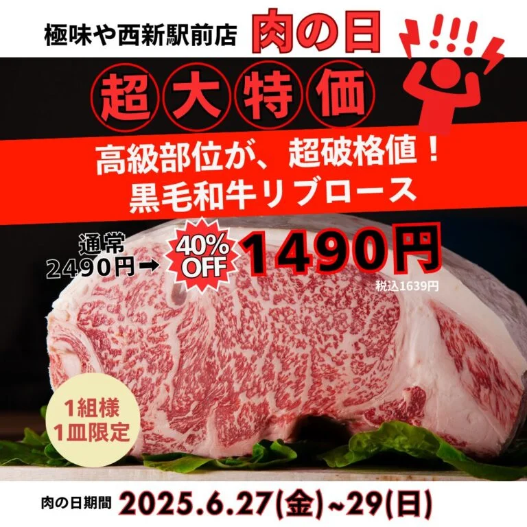 >>極味や西新駅前店 6月の肉の日🥰